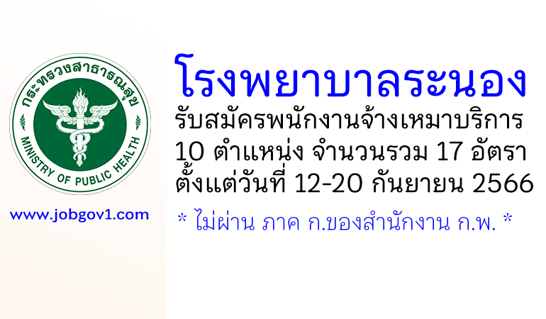 โรงพยาบาลหนองหญ้าปล้อง รับสมัครลูกจ้างชั่วคราว และลูกจ้างเหมาบริการ 5 อัตรา ตั้งแต่วันที่ 1-9 สิงหาคม 2567