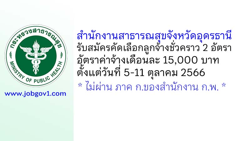 สำนักงานสาธารณสุขจังหวัดอุดรธานี รับสมัครพนักงานกระทรวงสาธารณสุขทั่วไป 33 อัตรา
