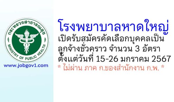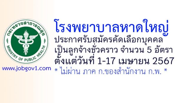 โรงพยาบาลหาดใหญ่ รับสมัครคัดเลือกบุคคลเป็นลูกจ้างชั่วคราว 5 อัตรา ตั้งแต่วันที่ 1-17 เมษายน 2567