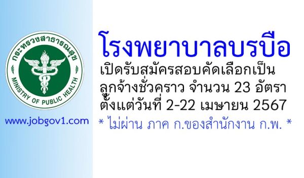 โรงพยาบาลบรบือ รับสมัครลูกจ้างชั่วคราว 23 อัตรา ตั้งแต่วันที่ 2-22 เมษายน 2567