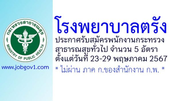 โรงพยาบาลตรัง รับสมัครพนักงานกระทรวงสาธารณสุขทั่วไป 5 อัตรา ตั้งแต่วันที่ 23-29 พฤษภาคม 2567
