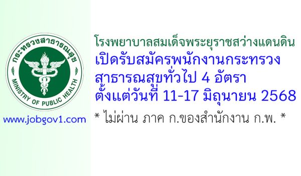 โรงพยาบาลสมเด็จพระยุราชสว่างแดนดิน รับสมัครพนักงานกระทรวงสาธารณสุขทั่วไป 4 อัตรา ตั้งแต่วันที่ 11-17 มิถุนายน 2568