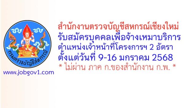 สำนักงานตรวจบัญชีสหกรณ์เชียงใหม่ รับสมัครบุคคลเพื่อจ้างเหมาบริการ ตำแหน่งเจ้าหน้าที่โครงการฯ 2 อัตรา ตั้งแต่วันที่ 9-16 มกราคม 2568