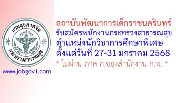 สถาบันพัฒนาการเด็กราชนครินทร์ รับสมัครพนักงานกระทรวงสาธารณสุขทั่วไป ตำแหน่งนักวิชาการศึกษาพิเศษ ตั้งแต่วันที่ 27-31 มกราคม 2568