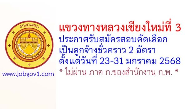 แขวงทางหลวงเชียงใหม่ที่ 3 รับสมัครลูกจ้างชั่วคราว 2 อัตรา ตั้งแต่วันที่ 23-31 มกราคม 2568