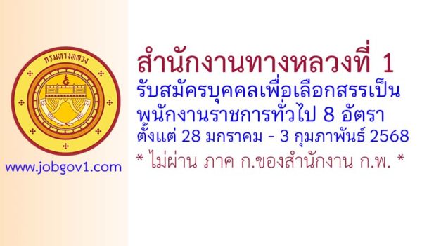 สำนักงานทางหลวงที่ 1 รับสมัครบุคคลเพื่อเลือกสรรเป็นพนักงานราชการทั่วไป 8 อัตรา ตั้งแต่วันที่ 28 มกราคม – 3 กุมภาพันธ์ 2568