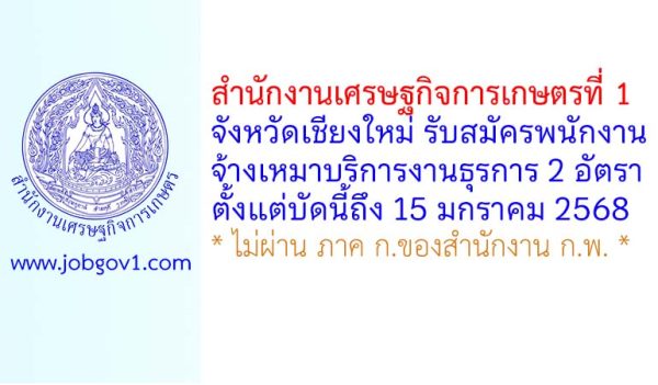 สำนักงานเศรษฐกิจการเกษตรที่ 1 รับสมัครพนักงานจ้างเหมาบริการงานธุรการ 2 อัตรา ตั้งแต่บัดนี้ถึง 15 มกราคม 2568