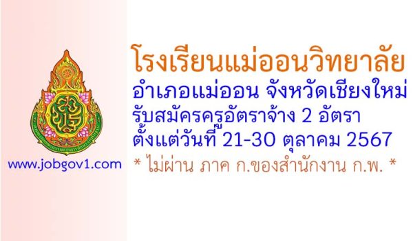 โรงเรียนแม่ออนวิทยาลัย รับสมัครครูอัตราจ้าง จำนวน 2 อัตรา ตั้งแต่วันที่ 21-30 ตุลาคม 2567