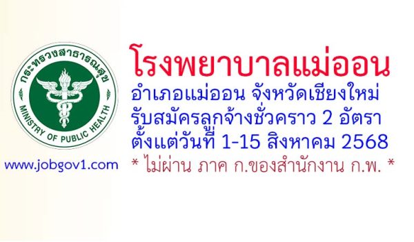 โรงพยาบาลแม่ออน รับสมัครลูกจ้างชั่วคราว 2 อัตรา ตั้งแต่วันที่ 1-15 สิงหาคม 2568