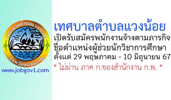 เทศบาลตำบลแวงน้อย รับสมัครพนักงานจ้างตามภารกิจ ตำแหน่งผู้ช่วยนักวิชาการศึกษา ตั้งแต่ 29 พฤษภาคม – 10 มิถุนายน 2567