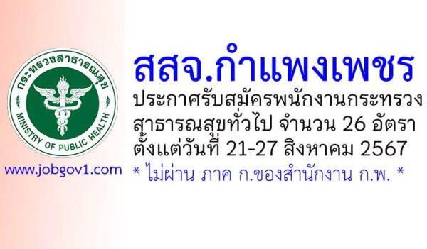 สสจ.กำแพงเพชร รับสมัครพนักงานกระทรวงสาธารณสุขทั่วไป 26 อัตรา
