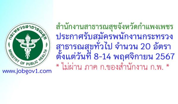 สำนักงานสาธารณสุขจังหวัดกำแพงเพชร รับสมัครพนักงานกระทรวงสาธารณสุขทั่วไป 20 อัตรา ตั้งแต่วันที่ 8-14 พฤศจิกายน 2567