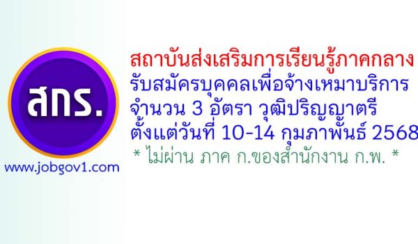 สถาบันส่งเสริมการเรียนรู้ภาคกลาง รับสมัครบุคคลเพื่อจ้างเหมาบริการ 3 อัตรา ตั้งแต่วันที่ 10-14 กุมภาพันธ์ 2568