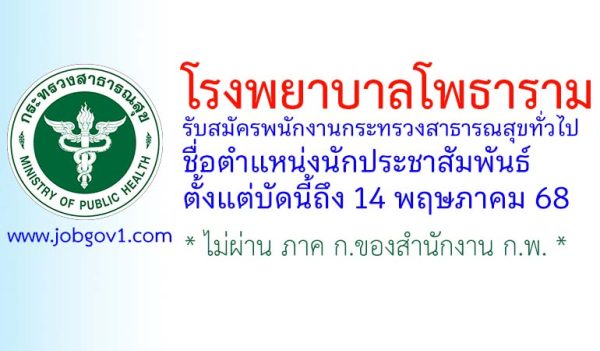 โรงพยาบาลโพธาราม รับสมัครพนักงานกระทรวงสาธารณสุขทั่วไป ตำแหน่งนักประชาสัมพันธ์ ตั้งแต่บัดนี้ถึง 14 พฤษภาคม 2568