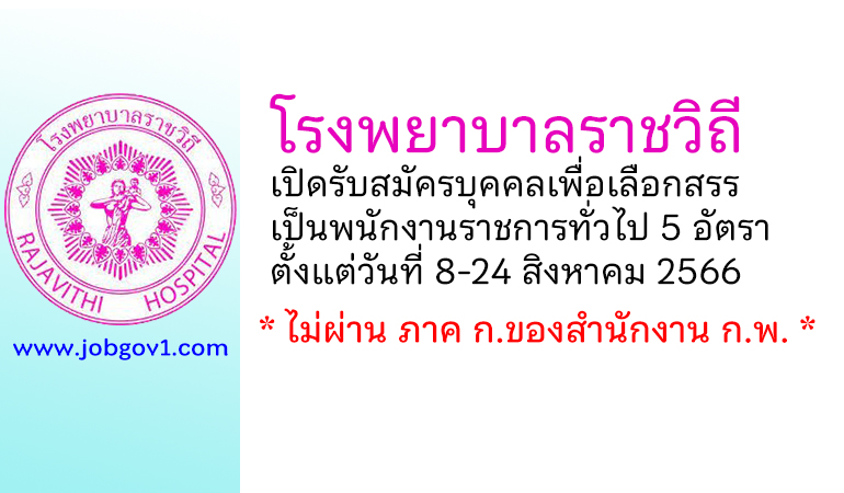 โรงพยาบาลราชวิถี รับสมัครบุคคลเพื่อเลือกสรรเป็นพนักงานราชการทั่วไป 21 อัตรา ตั้งแต่บัดนี้ถึง 1 กันยายน 2567