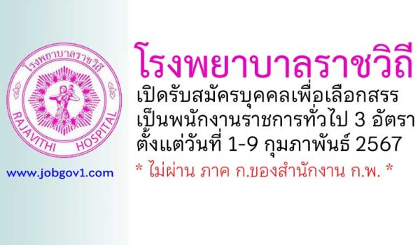 โรงพยาบาลราชวิถี รับสมัครบุคคลเพื่อเลือกสรรเป็นพนักงานราชการทั่วไป 3 อัตรา ตั้งแต่วันที่ 1-9 กุมภาพันธ์ 2567