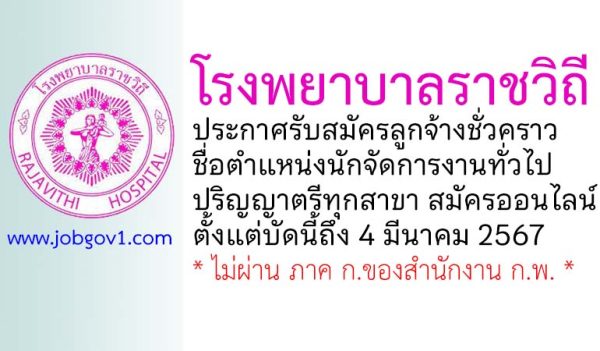 โรงพยาบาลราชวิถี รับสมัครลูกจ้างชั่วคราว ตำแหน่งนักจัดการงานทั่วไป ตั้งแต่บัดนี้ถึง 4 มีนาคม 2567