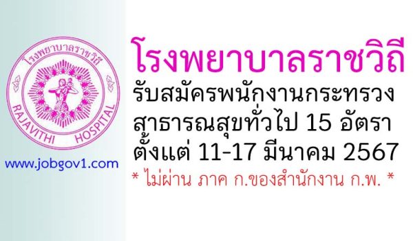 โรงพยาบาลราชวิถี รับสมัครพนักงานกระทรวงสาธารณสุขทั่วไป 15 อัตรา ตั้งแต่วันที่ 11-17 มีนาคม 2567