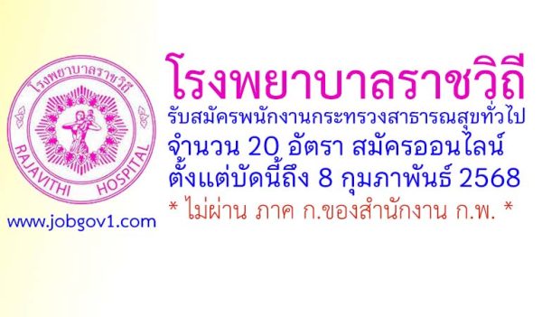 โรงพยาบาลราชวิถี รับสมัครพนักงานกระทรวงสาธารณสุขทั่วไป 20 อัตรา ตั้งแต่บัดนี้ถึง 8 กุมภาพันธ์ 2568