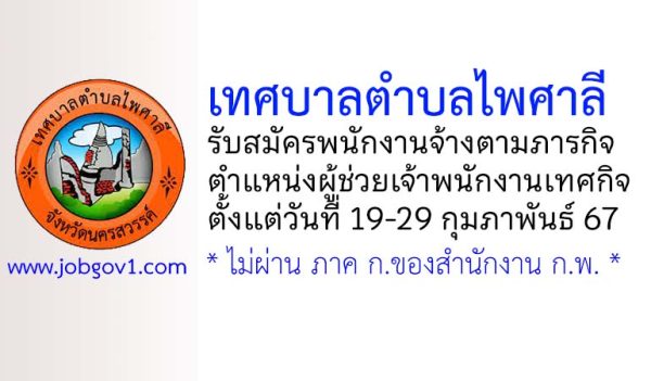 เทศบาลตำบลไพศาลี รับสมัครพนักงานจ้างตามภารกิจ ตำแหน่งผู้ช่วยเจ้าพนักงานเทศกิจ