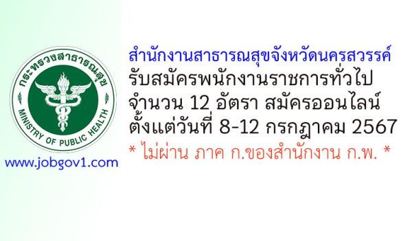 สำนักงานสาธารณสุขจังหวัดนครสวรรค์ รับสมัครบุคคลเพื่อเลือกสรรเป็นพนักงานราชการทั่วไป 12 อัตรา ตั้งแต่วันที่ 8-12 กรกฎาคม 2567