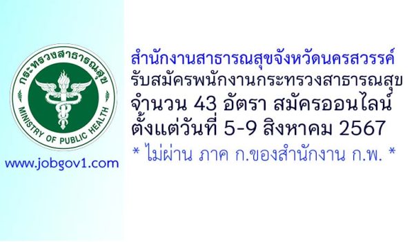 สำนักงานสาธารณสุขจังหวัดนครสวรรค์ รับสมัครพนักงานกระทรวงสาธารณสุขทั่วไป 43 อัตรา ตั้งแต่วันที่ 5-9 สิงหาคม 2567