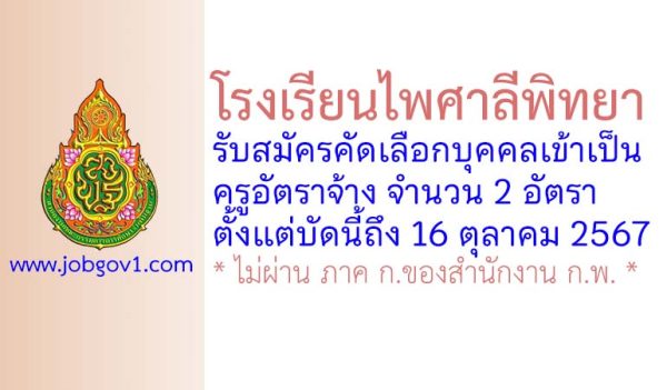 โรงเรียนไพศาลีพิทยา รับสมัครครูอัตราจ้าง จำนวน 2 อัตรา ตั้งแต่บัดนี้ถึง 16 ตุลาคม 2567